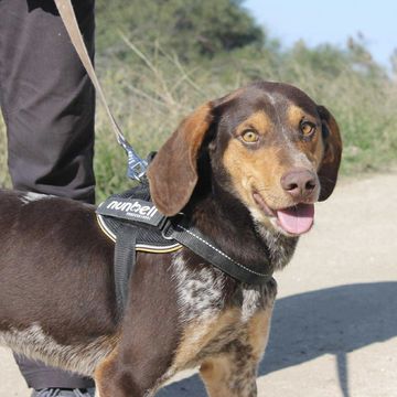 Noel is a beautiful 2-year-old hound cross, weighing around 18–20kg, with the most gentle and affectionate nature. He’s a calm, friendly boy who gets along wonderfully with other dogs and enjoys being around people. Noel has a lovely, easygoing personality that makes him a pleasure to spend time with. He’s also learning to walk nicely on the lead and is doing really well, happily heading out to explore and enjoying his walks. Noel has all the makings of a fantastic family dog — sweet, loyal,
